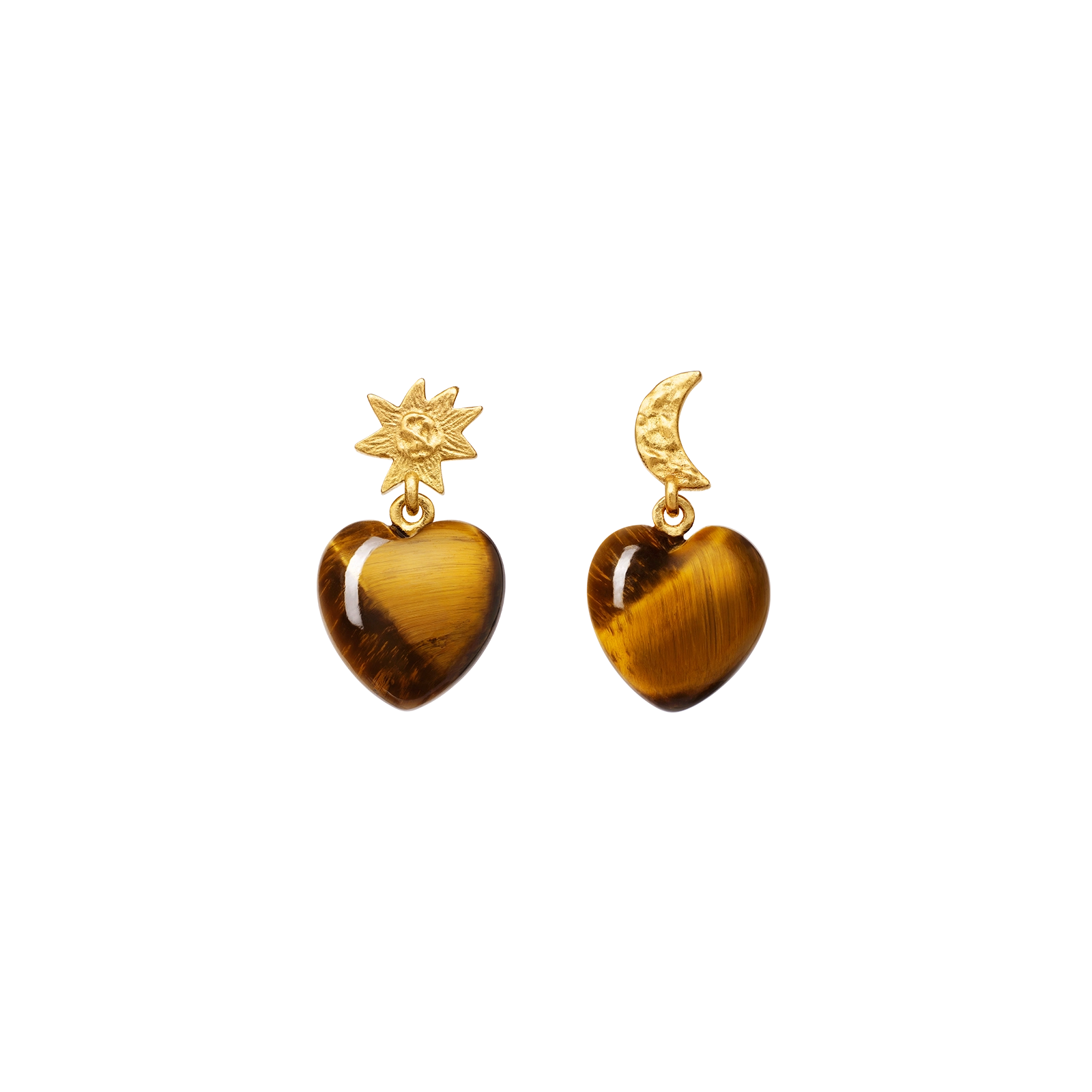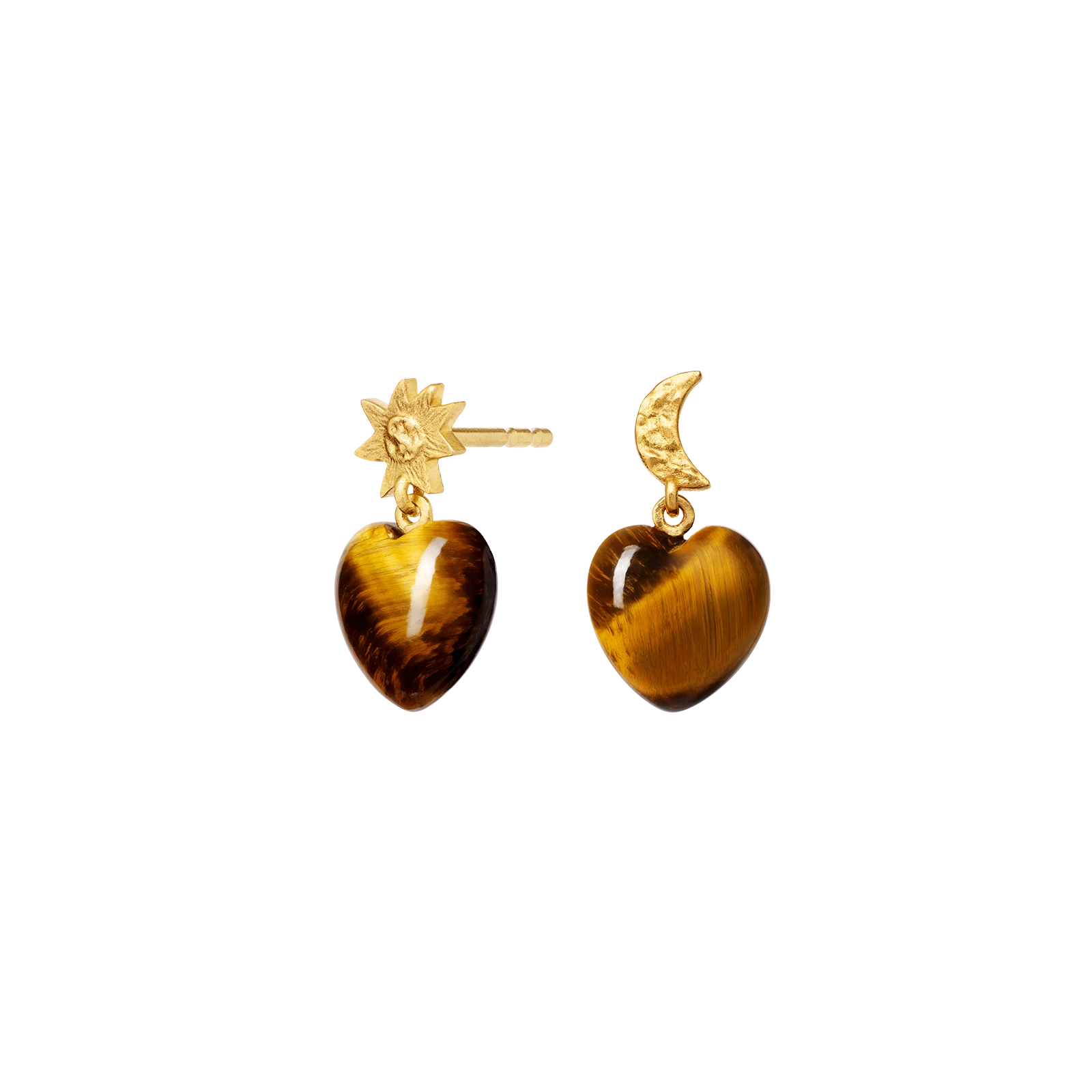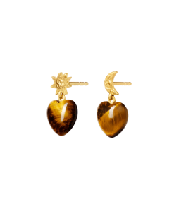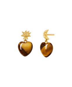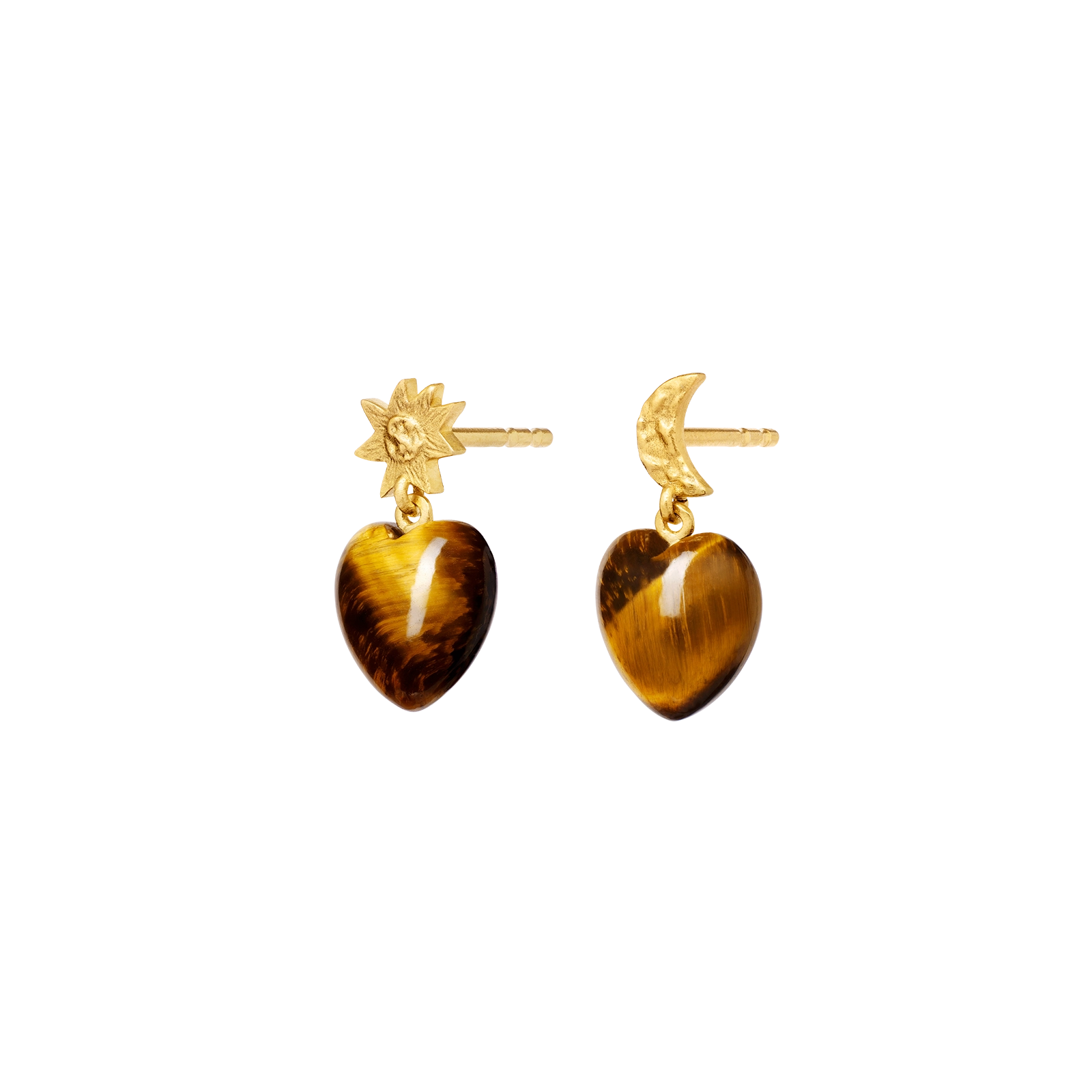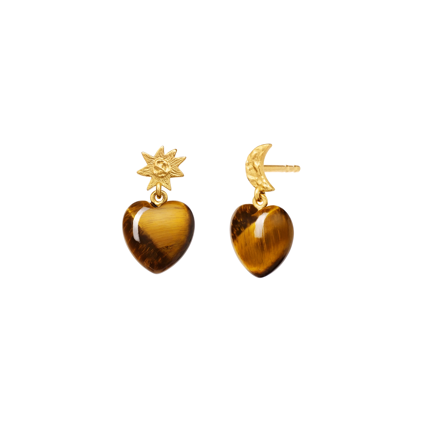 Vores Courage Øreringe er en smuk, daglig påmindelse om at finde modet inde i dig selv og møde udfordringer ansigt til ansigt. Mærk styrken, der udspringer fra de hjerteformede tiger øje-vedhæng, under en gylden stjerne og halvmåne.