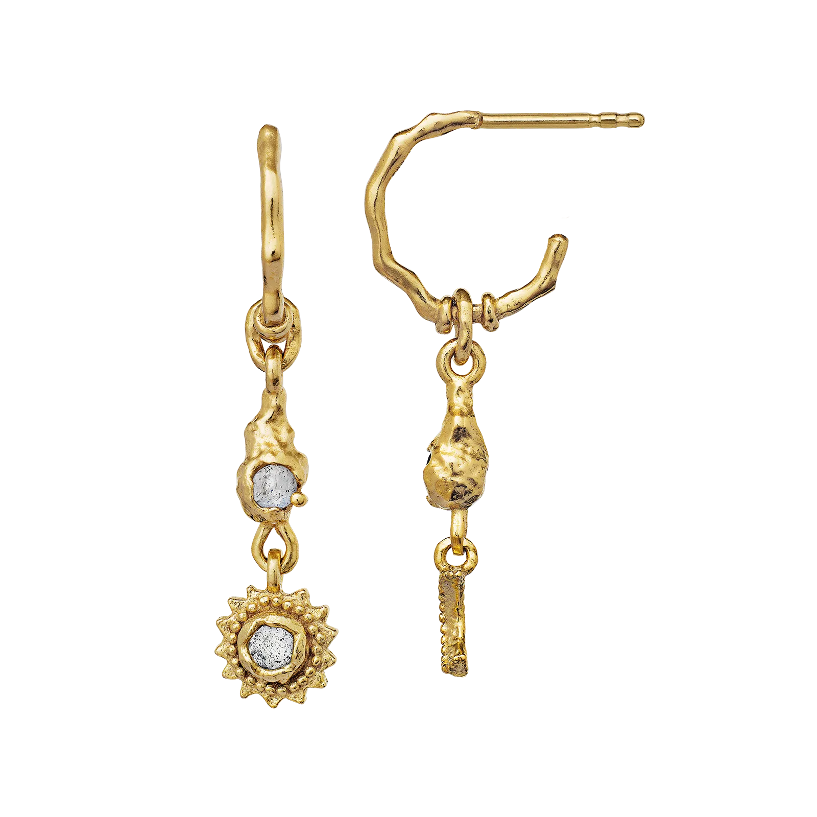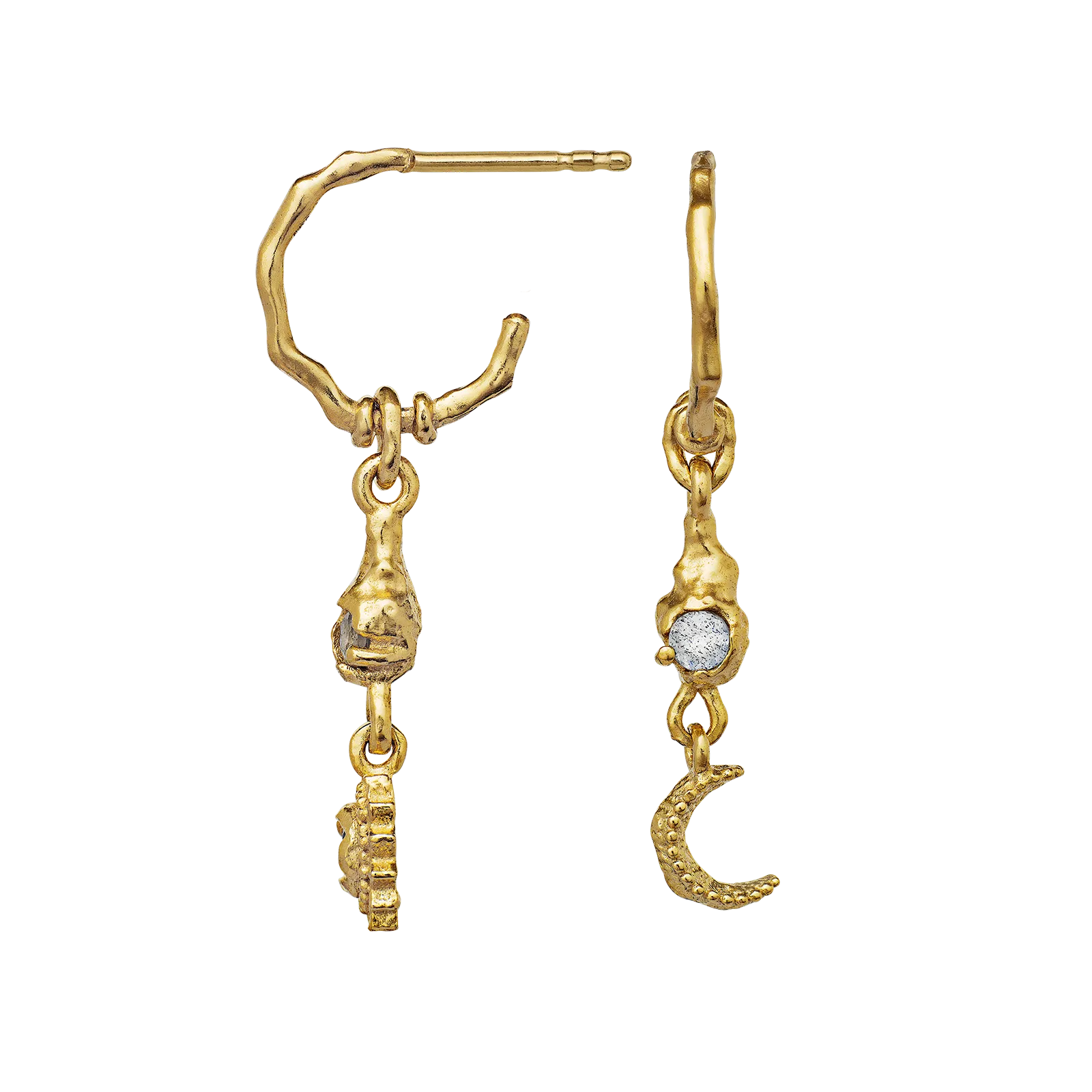 Få kræfterne fra dualismen mellem månen og solen i Ember-øreringenes strålende labradorit-sten.
