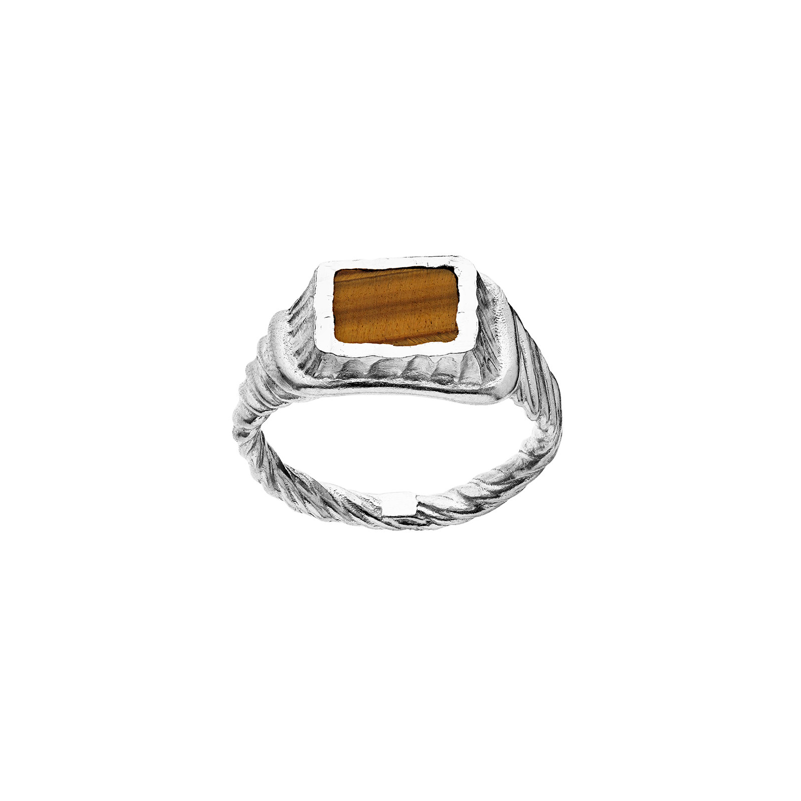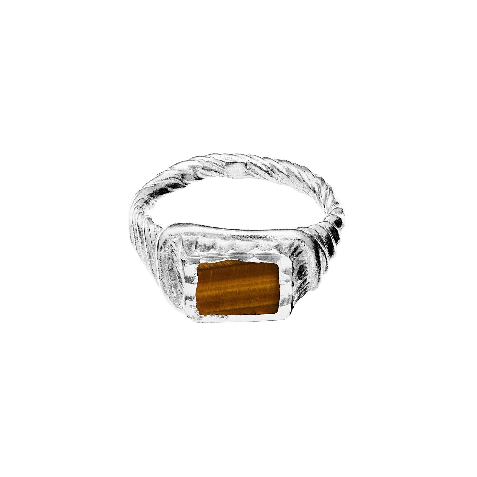 Kim er en signetring, der udstråler en stærk kraft fra sit store tigerøje. Det siges, at tigerøjet øger dit fokus og din opfindsomhed, så du kan nå dine mål.