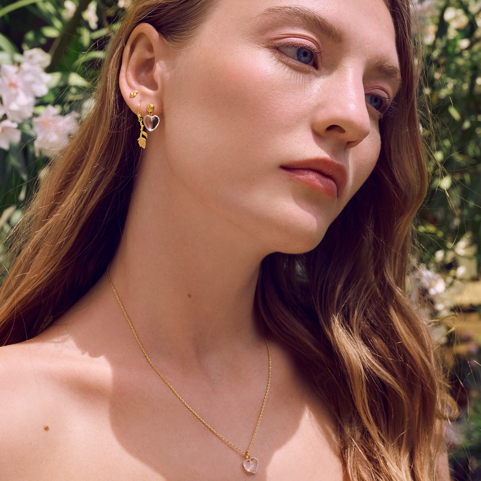 Svævende under en elegant rose fanger det hjerteformede krystalvedhæng på vores Lemona Petite Øreringe hvert et blik, og udstråler kærlighed til livet selv.