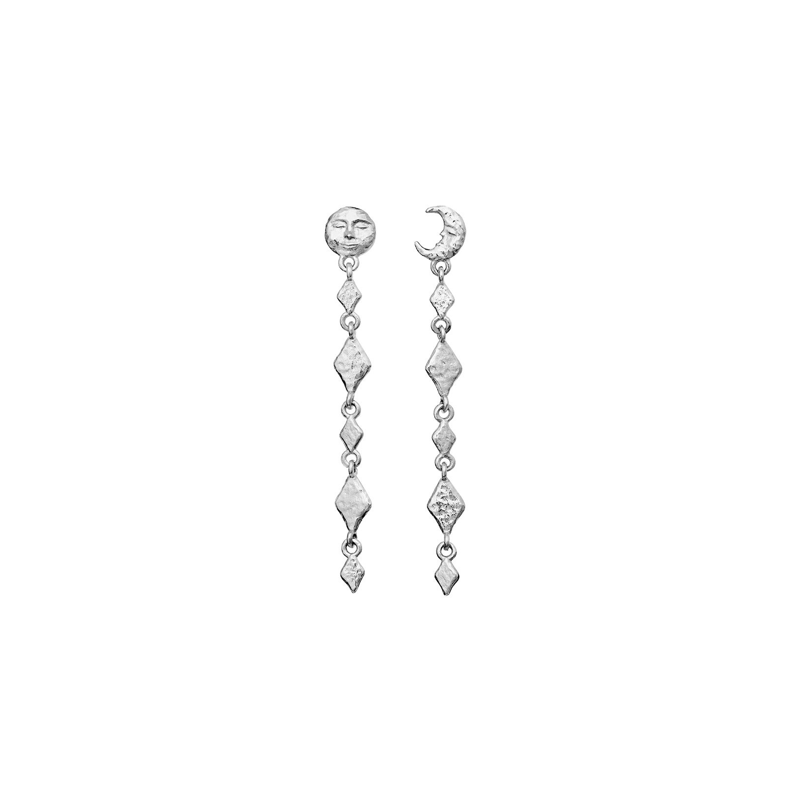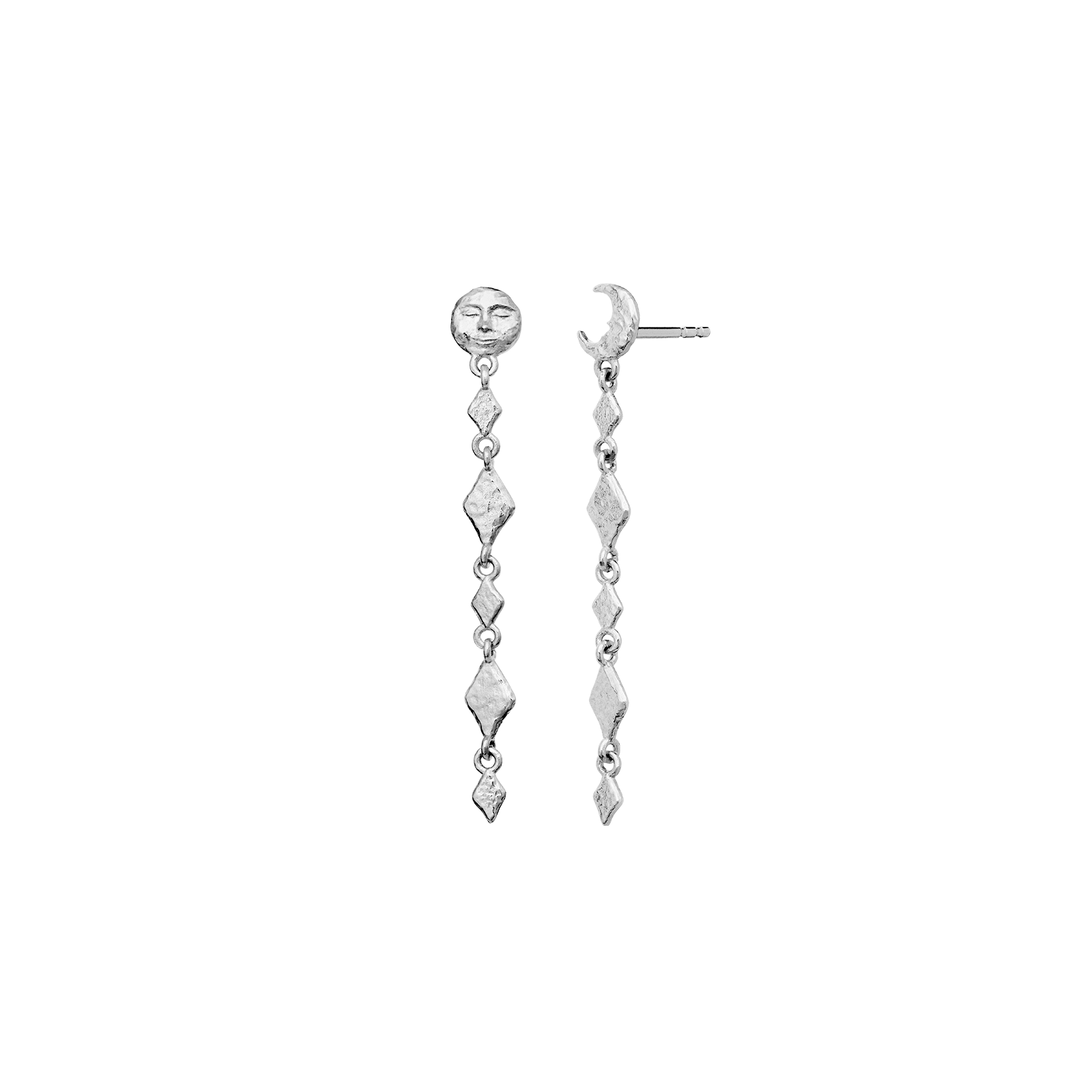 Vores Minola Øreringe henter inspiration fra månens skiftende faser. Med de elegante kæder af små harlekinformer, symboliserer de kreativitetens evigt foranderlige væsen.