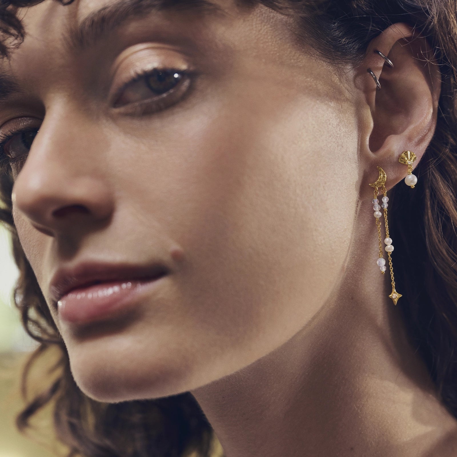 Med et yndefuld og rent udtryk er vores Odette Øreringe en hyldest til skønhed. Prydet med glimtende zirkoner og ferskvandsperler, udstråler de tidløs elegance og mildhed.