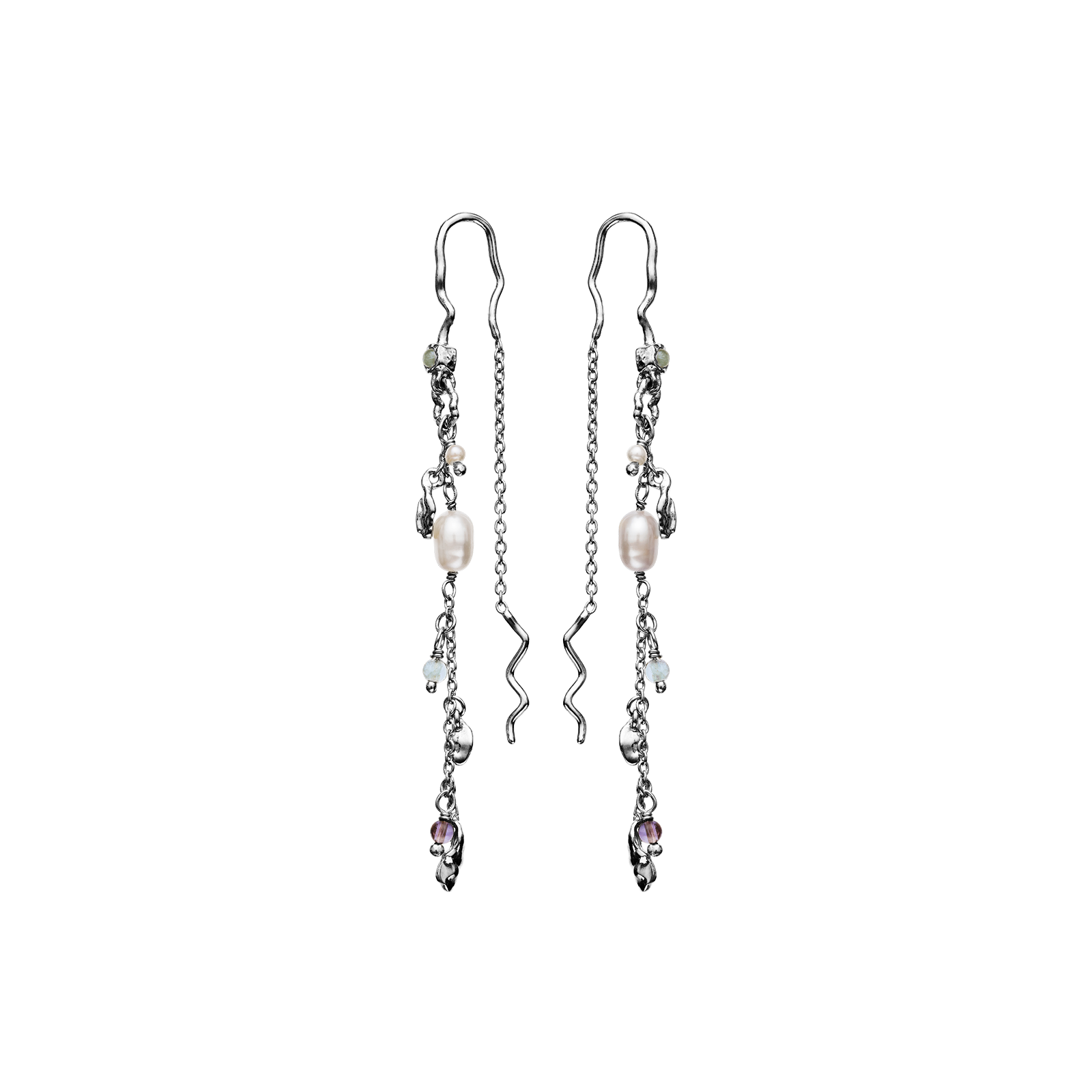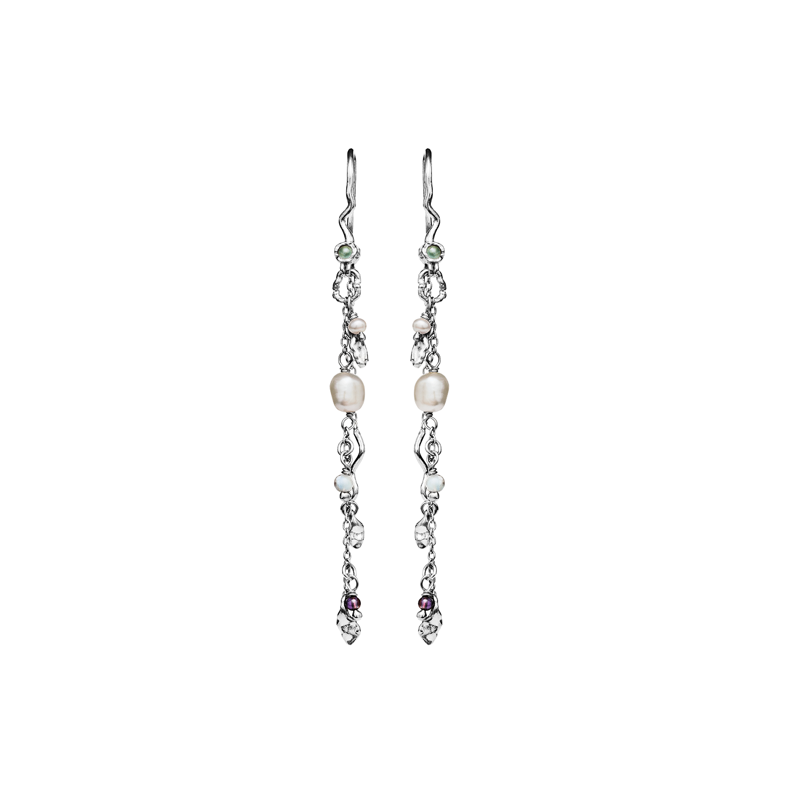 Poppy er en unik og feminin ørering, med forskellige sten, en ferskvandsperle og snoede detaljer.