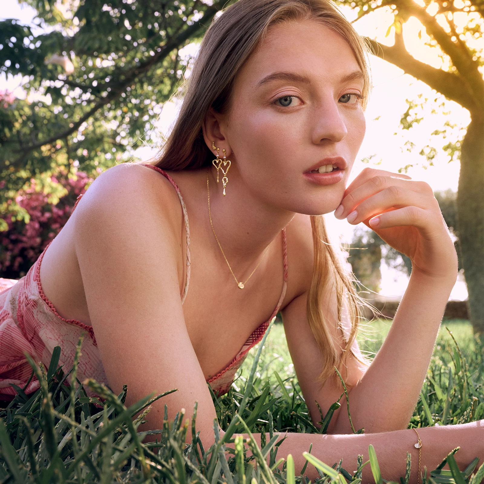 Som Afrodite, der opstod fra havet på en bølge af kærlighed, falder vores Sabrina Øreringe elegant i kaskader fra øret. De flyder over med kærlighed og en aura af renhed og tålmodighed.