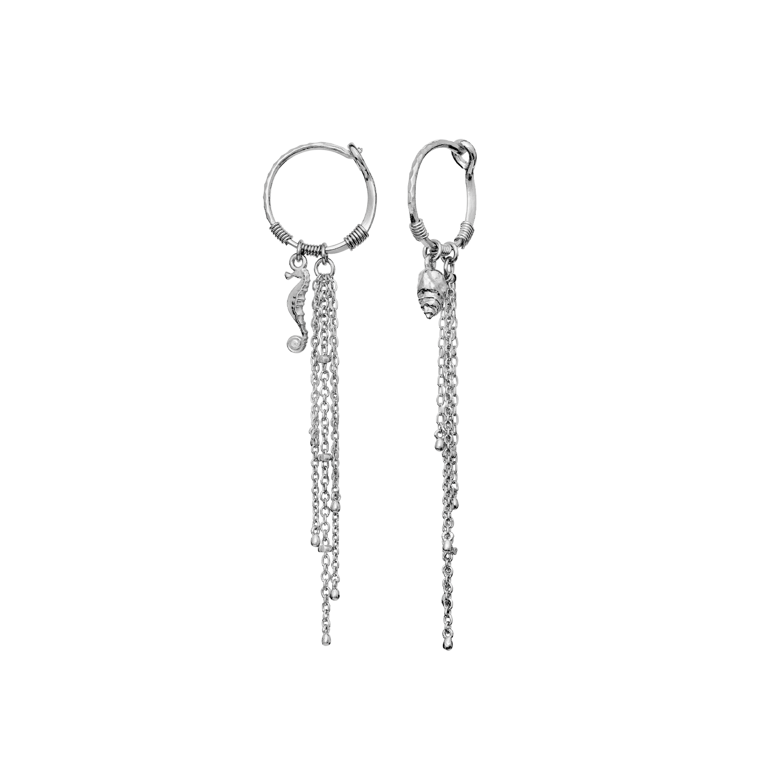 En elegant ørering smykket med små vedhæng fra havet samt asymmetriske, svajende kæder gør Sereia øreringen til prikken over i’et for den moderne havfrue.